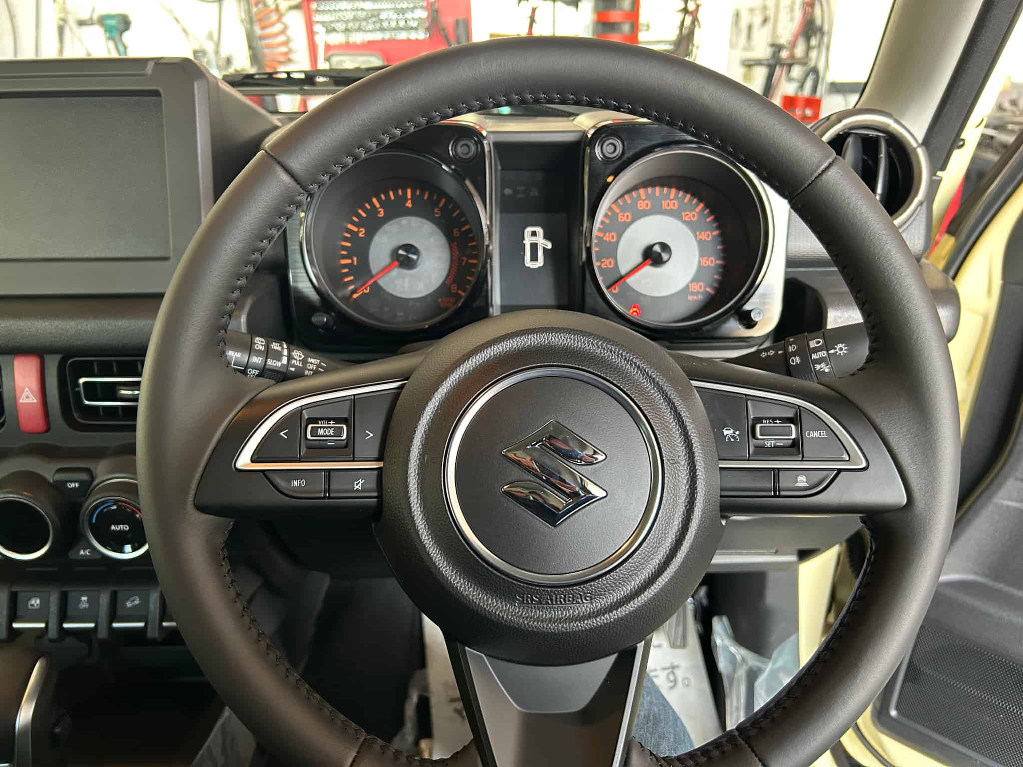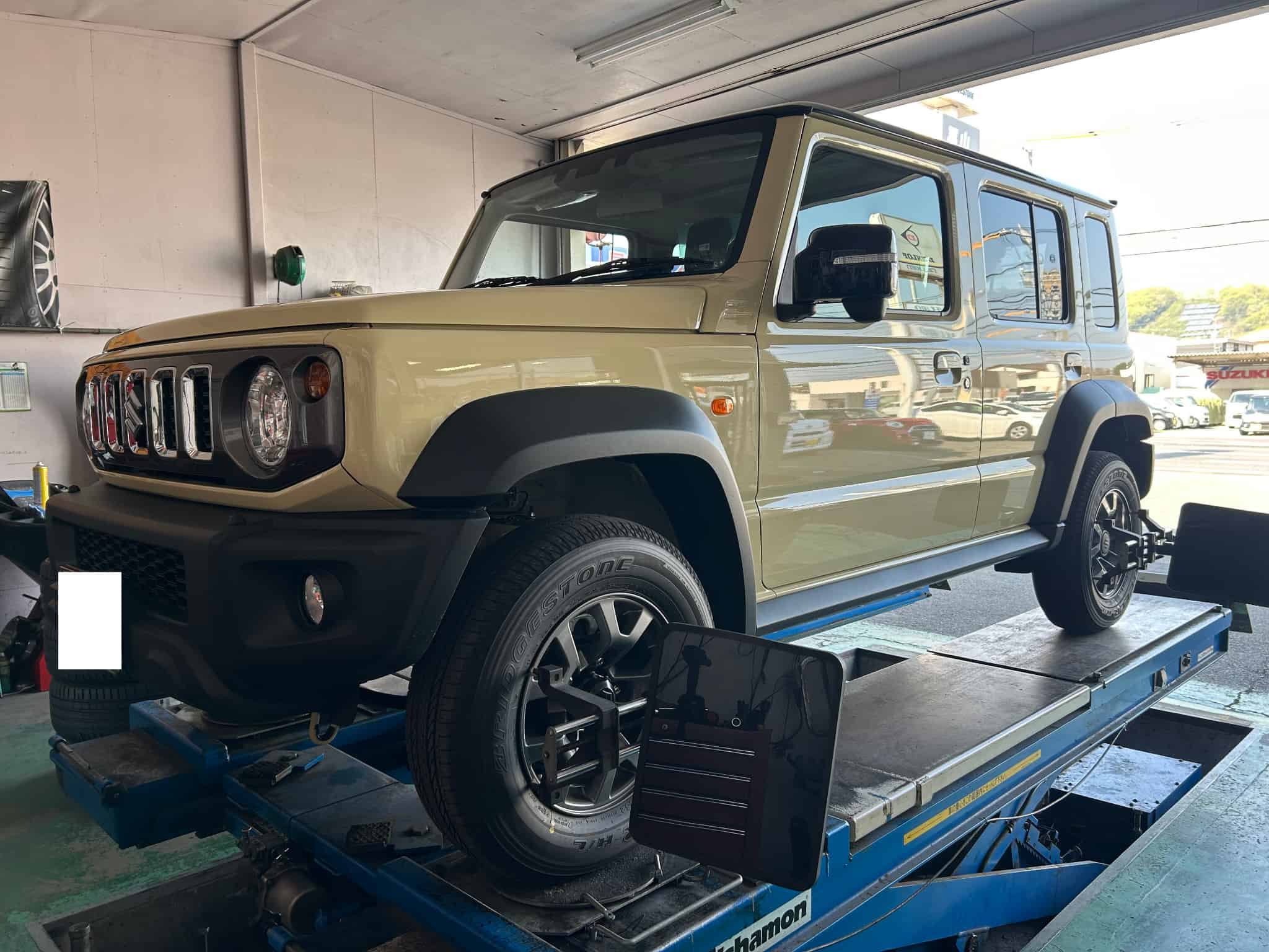 ジムニーノマドの純正アライメントのデータ取りのため測定。 ハンドルセンターも若干右ずれ。 最初に空気圧を調整するのですが純正は180KPaのはずが、 まさかの4輪とも280KPa💦100KPaも多いのWhy? 適正ゲージで200KPaに